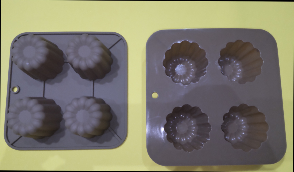 「パパこれ欲しい!」と指さしたのが、シリコン製のカヌレの型。そういえばその半年くらい前に「カヌレの型が欲しい!」と言われ、ネットで調べたらちょっとビックリするような金額だったので、金欠の時期ということもあり却下した経過がありました。が、ダイソーさんで型を見つけた瞬間、彼女の中にあったマグマが一気に噴き出したようで、結局後日その型を4個も買ってきたのです。1個200円だからまあいいかと。で、今回はその型を使ってワイフがカヌレを作ってみたのでお楽しみいただればと思います。