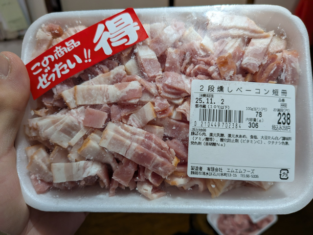 先日またまたエムエムフーズさんに酒の肴を仕入れに行きました。今回はそれほど目新しいものはなく、いつものように豚タンとか鶏皮なんかをを買い、「これでしばらくは楽しめそうじゃわい、グワッハッハッハ」と一人悦に入っていたわけです。