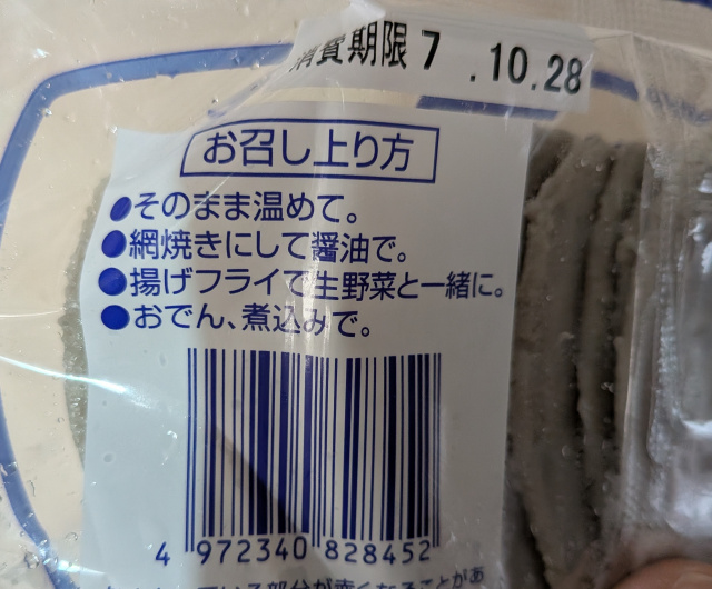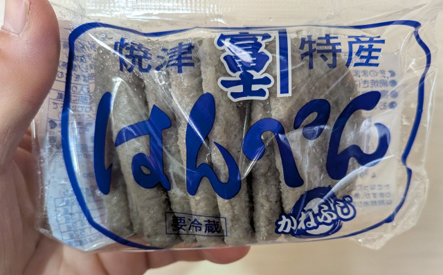 さて、話はコロっと変わります。エムエムフーズさんでとりあえず目当ての品物を買い終わって、店内をフラフラしていると冷蔵庫にはんぺん、全国的には《黒はんぺん》ってことになるんでしょうけど、それが売ってたので「今日の晩酌のアテにするか。」と買ってみることにしました。
